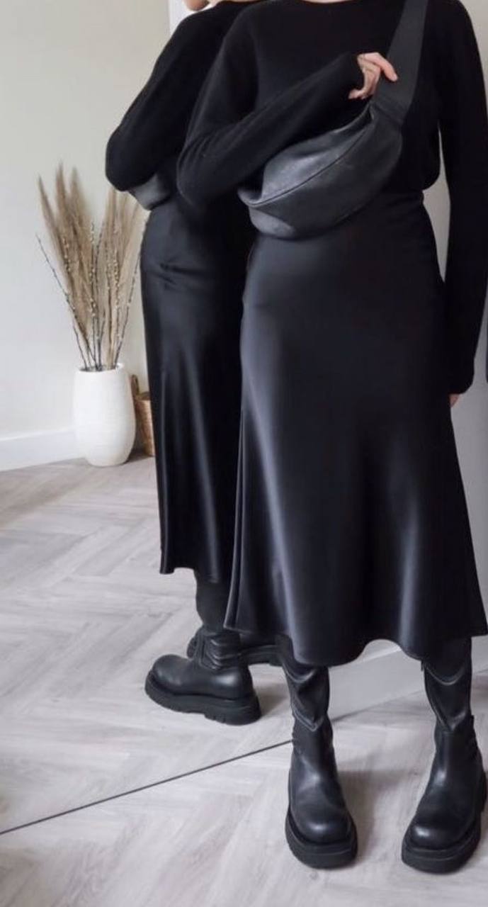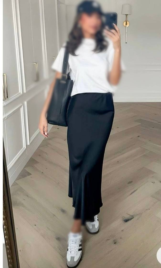 این دامن ساتن با بافت لطیف و درخشش ملایم، انتخابی کلاسیک و همیشه ترند برای استایل‌های روزمره شیک تا نیمه‌رسمی است. طراحی ساده و برش روان آن باعث می‌شود دامن به‌زیبایی روی بدن بنشیند و فرم اندام را کشیده‌تر نشان دهد.
