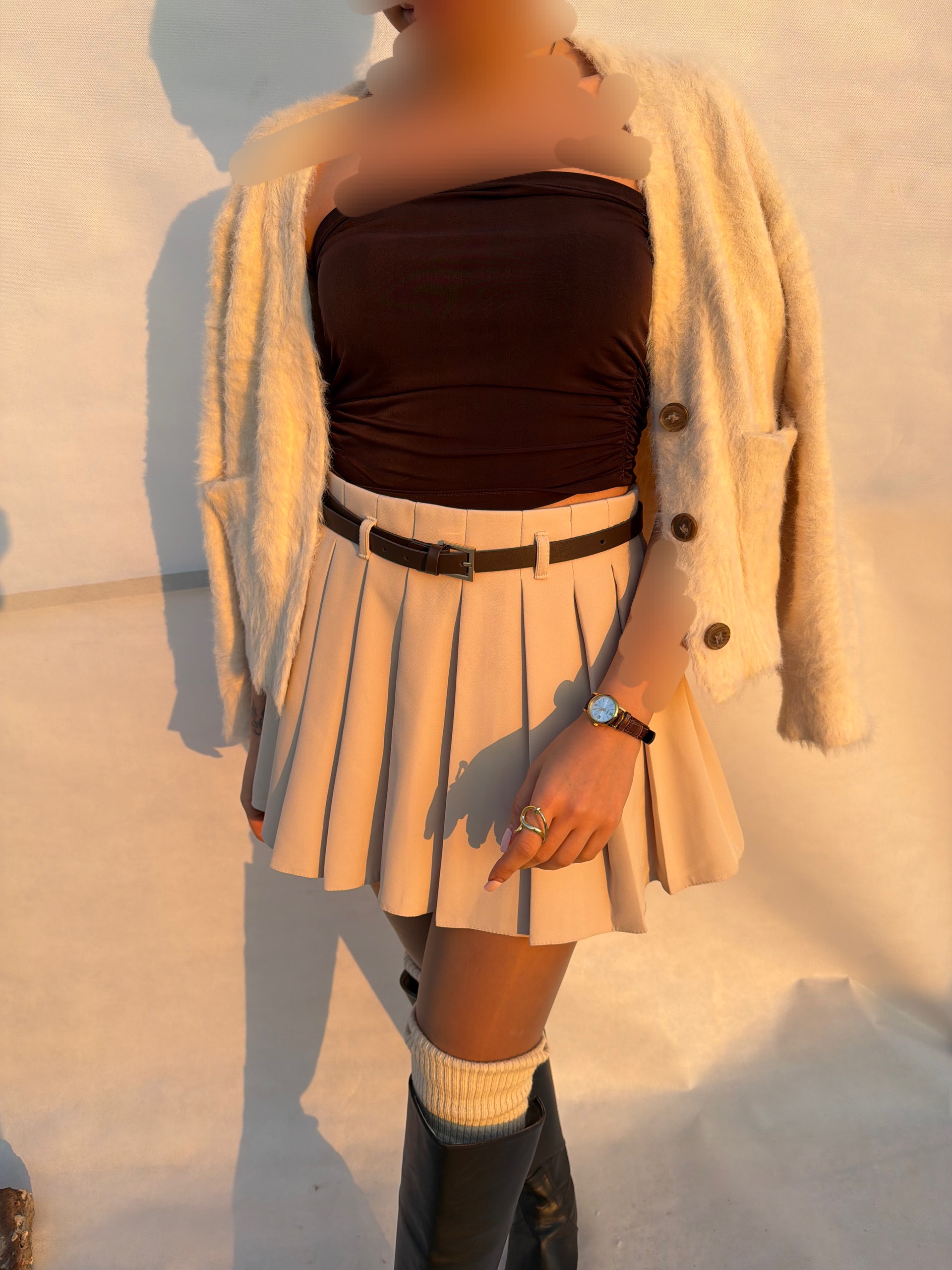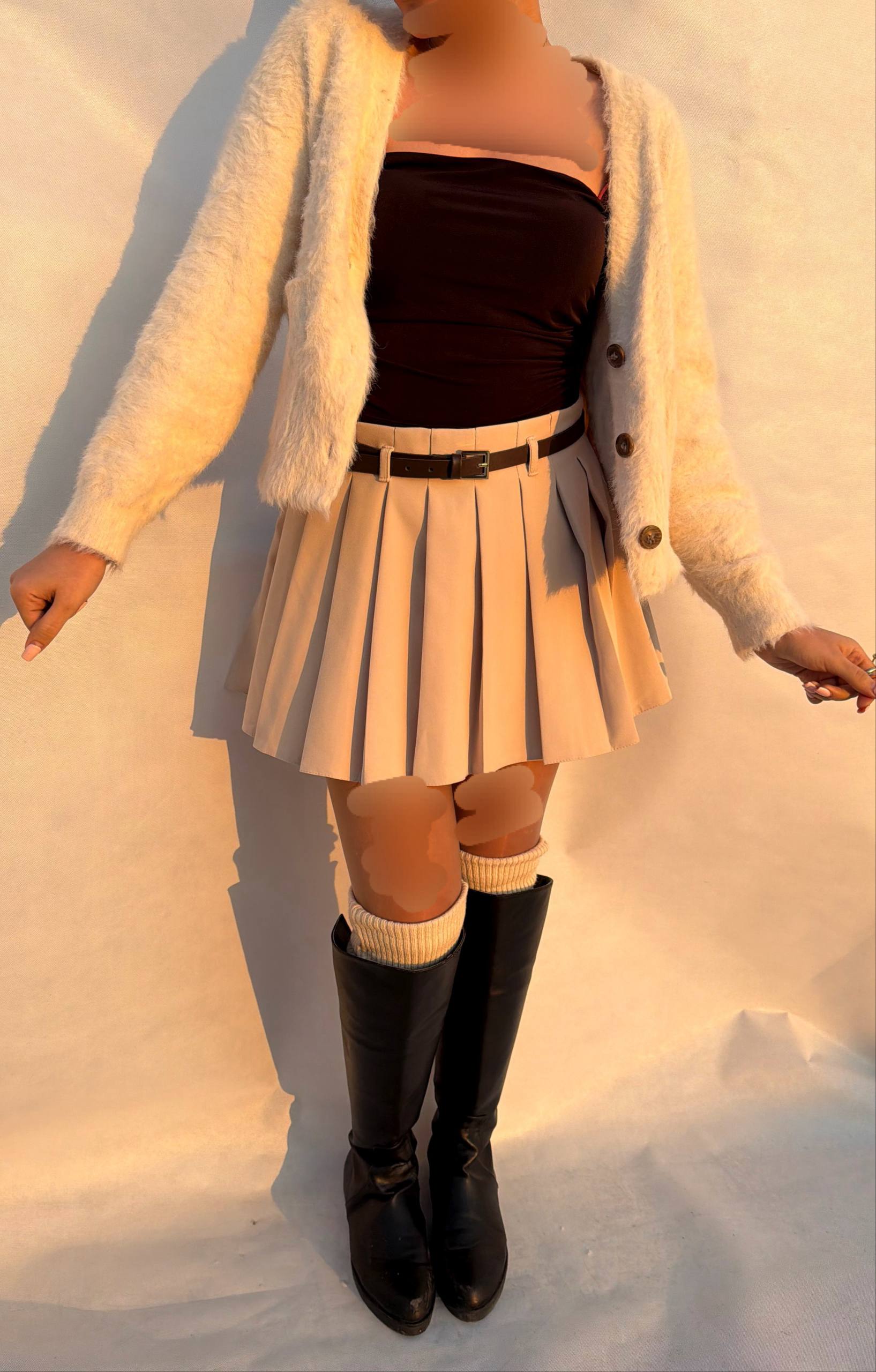 دامن پلیسه کوتاه Manad با رنگ کرم گرم و مینیمال، طراحی شده برای دخترهایی که استایل ظریف اما جسور رو دوست دارن.