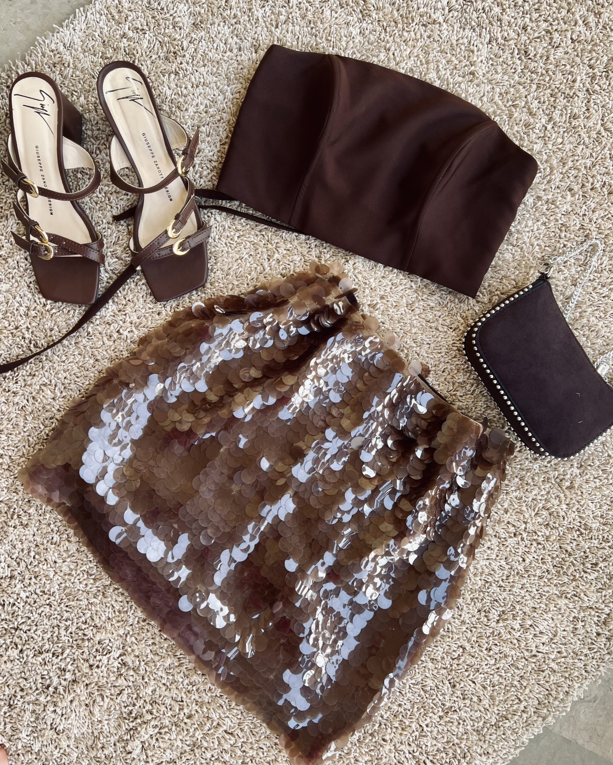 دامن پولکی با قد 38 سانتی متر حدودا که به راحتی با یه ایتم ساده ست میشه . داخل دامن کاملا استر کشی شده و زیپ هم توی پهلوی کار تعبیه شده