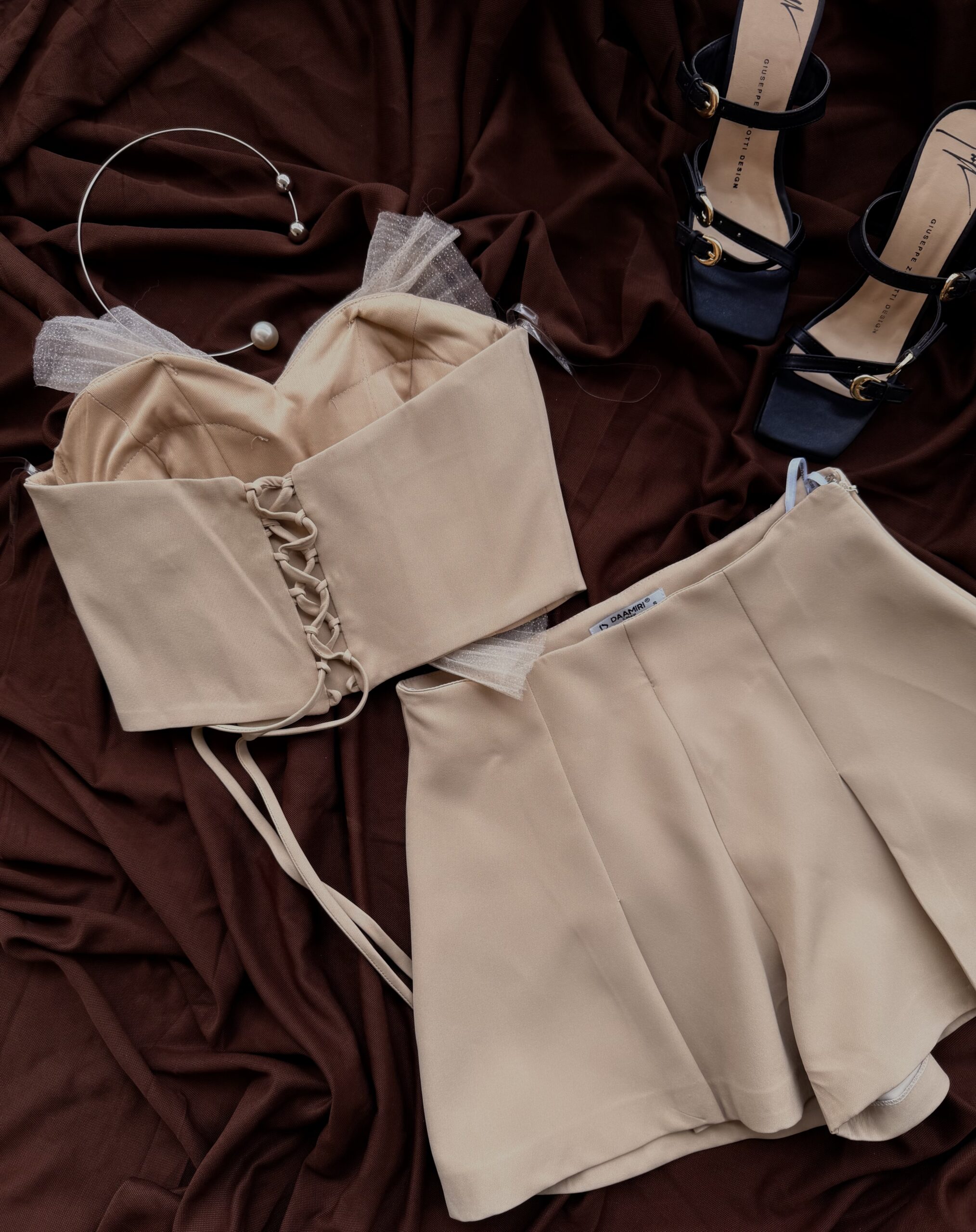 خانه / پیراهن / ست دکلته و شلوارک پروانه ای کرم