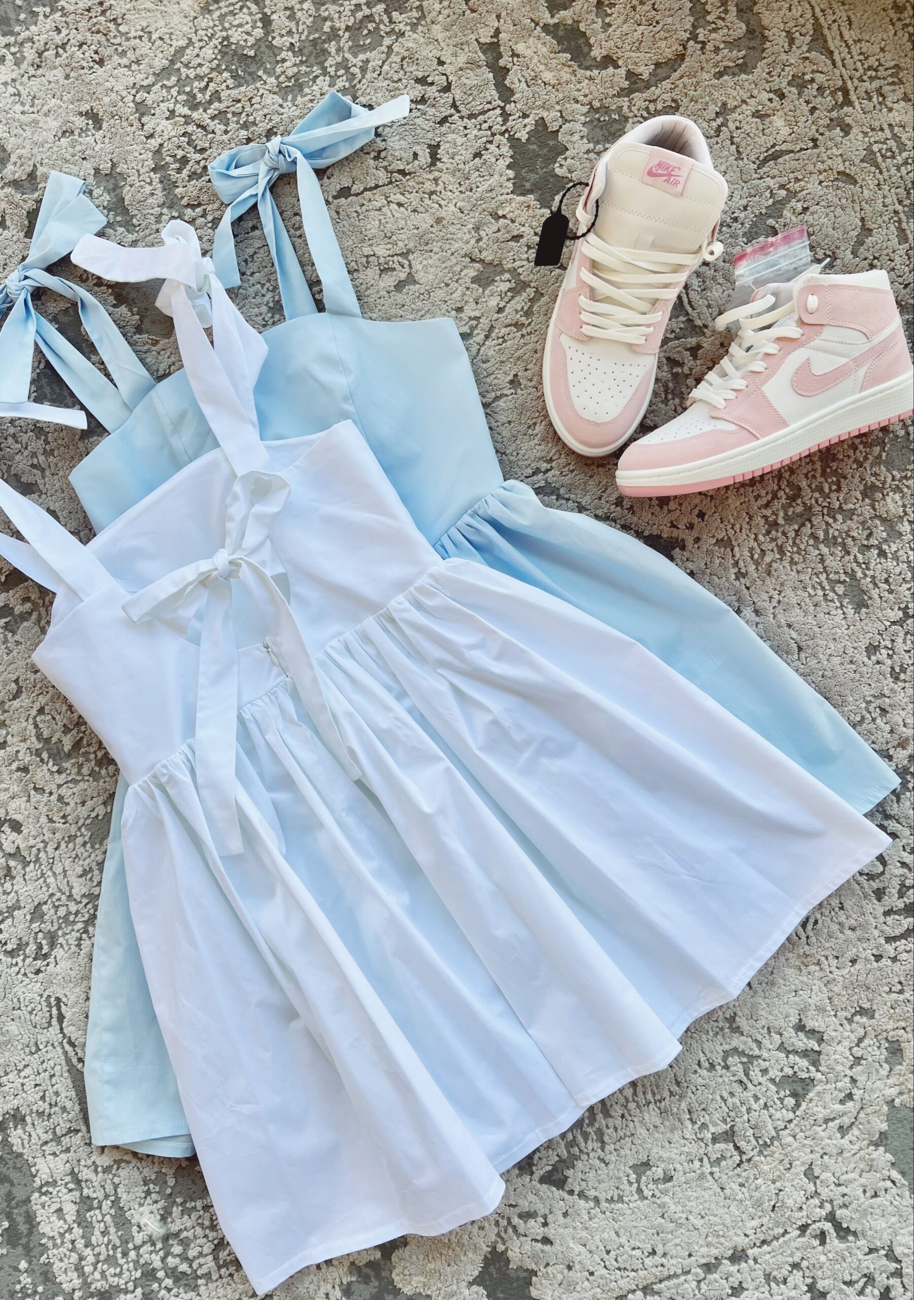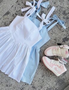 این پیراهن بندی با طراحی دو رنگ آبی و سفید و جزئیات پاپیونی، انتخابی خنک و دخترانه برای روزهای گرم سال است. پارچه سبک و تنفسپذیر آن باعث میشود لباس روی بدن آزاد و راحت بنشیند و برای استفاده روزمره، سفر و استایلهای کژوال تابستانی کاملاً ایدهآل باشد.